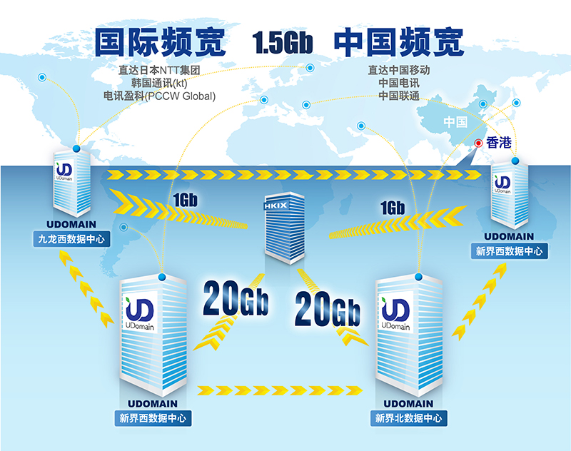 今月 UDomain 再作突破,本地带宽增加一倍至 40Gb,更率先采用环状网络架构贯穿四大数据中心,以发挥兼融及互通优势,实现无挤塞传输。
